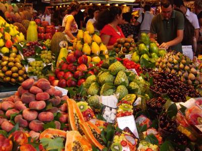 Am Montag ging es mit dem Bus nach Barcelona. In ca. einer halben Stunde waren wir in der Innenstadt am Placa de Catalunya. Erstmal orientieren und dabei feststellen, dass Timons schöner Sonnenhut leider im Bus ohne uns weitergefahren ist... Also haben wir erstmal versucht, einen neuen Hut aufzutreiben. Nach kurzer, aber vergeblicher Suche (es gibt nur noch Herbst- und Wintersachen) also endlich los ein kleines Stück von Barcelona zu entdecken: direkt runter über die La Rambla zur Markthalle. War natürlich sehr voll, aber definitiv sehenswert.