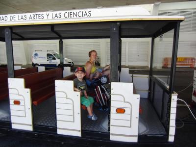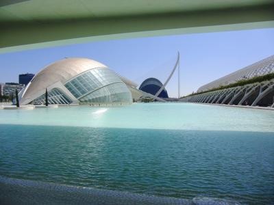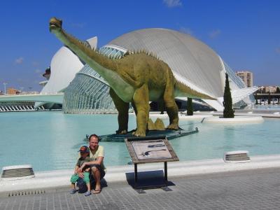 Am nächsten Tag fahren wir morgens gleich weiter nach Valencia, diesmal ohne Umwege. Unsere erste Station führt uns in die Ciudad de las Artes y las Ciencias (Stadt der Künste und der Wissenschaft) mit außergewöhnlicher Architektur, die in einem trockenen Flussbett angelegt wurde. Alles wirkt noch neu und modern. Es gibt eine Oper, einen Musikpalast, ein Planetarium, ein Wissenschaftsmuseum und Europas größtes Aquarium. Wir schauen uns die Sachen aber lieber von außen an – da gibt es zum Glück genug Schatten und sogar ein kleines Zügchen von dem wir uns rumkutschieren lassen. Die Kinder fanden es toll, unsere Füße auch ;) Am Schluß haben wir noch eine Spezialität aus Valencia probiert: Hocharta de Chufa. Sieht erstmal aus wie Eiskaffee, ist in Wahrheit aber ganz süße Erdmandelmilch. Zum Glück haben wir erstmal nur eins bestellt: Jenny fands bäh, Stefan yummy yummy (Anmerkung: schmeckt wie koreanisches Reisgetränk.