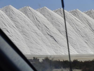 Wir kommen an riesigen Salzseen und –firmen vorbei. Die Meersalzgewinnung ist in dieser Region ein großer Wirtschaftsfaktor.