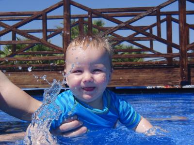 Hier mal Eindrücke von unseren zwei Wasserratten, noch auf dem Campingplatz Torre de la Mora.